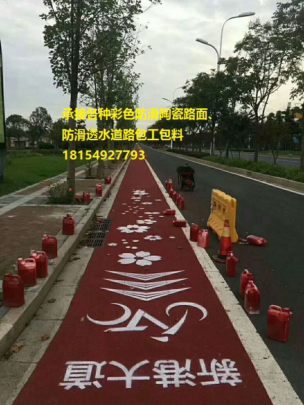 (3)著色 透水混凝土:在素色透水混凝土面上噴涂高耐候性、高耐磨性丙烯酸類。 可根據(jù)實際要求選擇單色或多色噴涂。