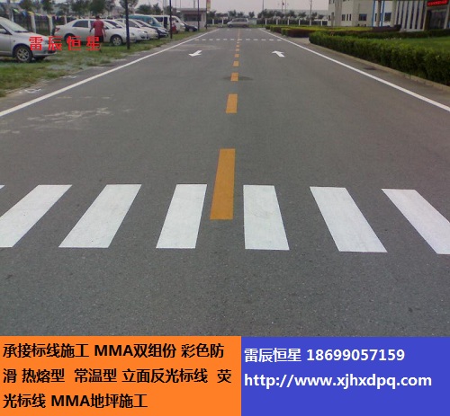 雙組份標(biāo)線涂料的特點(diǎn): 1. 對(duì)環(huán)境友好:雙組份標(biāo)線涂料不含溶劑,揮發(fā)物含量低,老線復(fù)線無(wú)需打磨,屬于環(huán)境友好型產(chǎn)品。 2. 反光型好:面撒微珠在雙組份反應(yīng)過(guò)程中,在分子健力的作用下,使其與標(biāo)線牢固結(jié)合為整體,不易脫落,反光性好。 3. 耐久性好:?jiǎn)蝹€(gè)組份的分子量小,在發(fā)生聚合反應(yīng)前有較好的滲透性,在聚合過(guò)程中發(fā)生聚合化學(xué)反應(yīng),使標(biāo)線與地面牢固成為整體。附著力*,特殊的施工工藝,保證了0.6mm的漆膜厚度有效地保證了一次施工,使用壽命兩年的標(biāo)線壽命。 4. 抗污性好:成膜后形成的超大分子量漆膜飽滿(mǎn)、堅(jiān)固、耐候性好,實(shí)驗(yàn)證明在高溫100℃以下,漆膜不隨氣溫變化而變化,抗污性好,被標(biāo)線行業(yè)稱(chēng)為:瓷玉標(biāo)線。