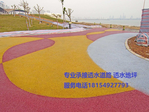 (3)著色  透水混凝土:在素色透水混凝土面上噴涂高耐候性、高耐磨性丙烯酸類。 可根據(jù)實際要求選擇單色或多色噴涂。