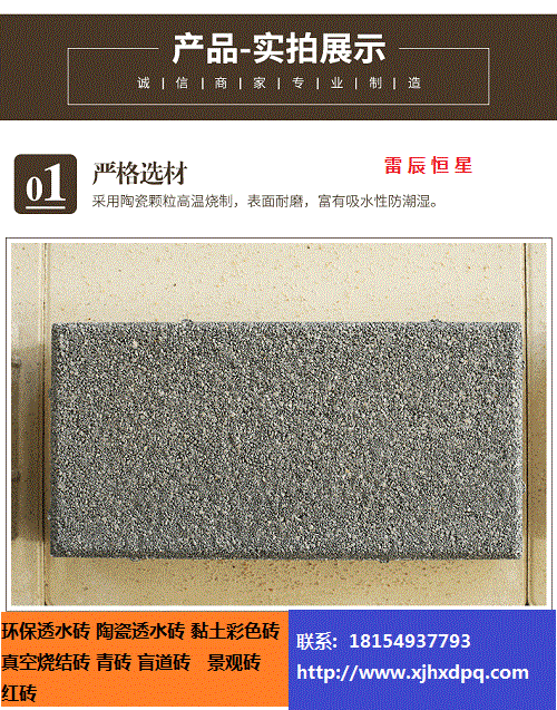 新疆雷辰恒星有限公司,成立于2015年,是*從事海綿城市建設(shè)的企業(yè)。公司擁有國內(nèi)*的透水系列產(chǎn)品生產(chǎn)設(shè)備,透水產(chǎn)品膠結(jié)料生產(chǎn)車間、透水磚生產(chǎn)車間及承接海綿城市建設(shè)工程的全套施工工具、設(shè)備。產(chǎn)品主要有:彩色透水磚:透水磚與傳統(tǒng)的彩色路面磚不同,它呈多孔、蜂窩狀結(jié)構(gòu),本身有自然積存、自然滲透、自然凈化功能。它能有效的解決城市熱島效應(yīng)、除塵降噪,是海綿城市建設(shè)不可缺少的路面材料。聯(lián)系熱線18154927793李經(jīng)理或者0991-6867420.