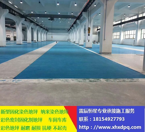 1、混凝土納米染色地坪是在混凝土密封固化地坪的施工後期,用納米染色劑進(jìn)行染色操作,并結(jié)合拋光工藝而成的一種整體的、高強(qiáng)度、高致密、高耐久的彩色混凝土地坪。從根本上解決密封固化地坪沒(méi)有顏色的缺點(diǎn)。