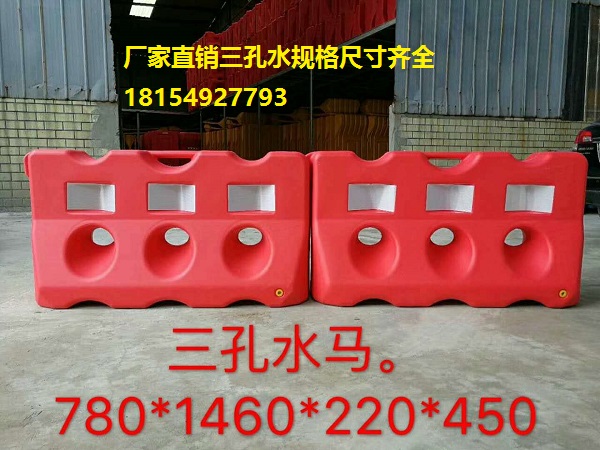三孔水馬用進口PE制造,盛水后更具緩沖彈性,能吸收強大的沖力有效地減少對汽車、路人及圍欄內(nèi)工作人員的傷害。顏色鮮明,可根據(jù)道路要求選擇不同顏色,清楚明確地指示行車路線。串連使用,整體承受力更強。