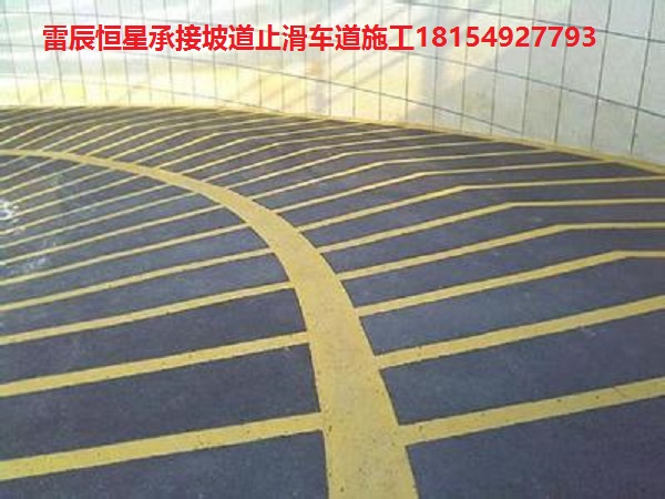 1. 防滑車道又稱無(wú)震動(dòng)止滑車道、停車場(chǎng)防滑坡道、暴砂防滑地面、止滑型坡道、停車場(chǎng)防滑地坪漆等。專門用于各類停車場(chǎng)上、下坡道場(chǎng)所。防滑車道材料一種雙組份、反應(yīng)硬化性材料,主要成分由是改性樹脂和C料組成,含有多 角性硬度極高的骨材,利用巨大比表面積,達(dá)到防滑效果