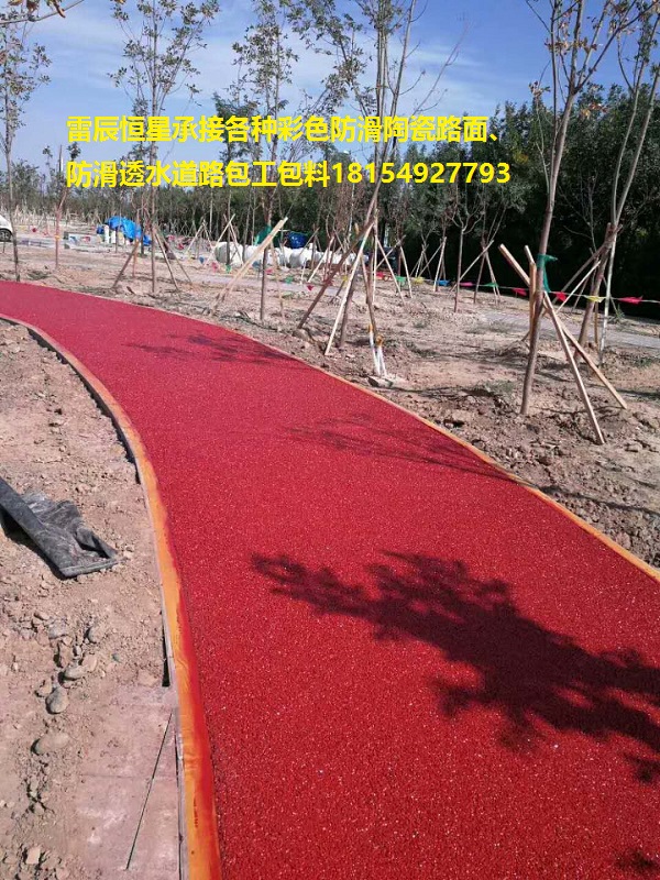 根據(jù)施工現(xiàn)場(chǎng)的條件結(jié)合圖紙及彩色透水地坪的結(jié)構(gòu)進(jìn)行開挖土方,放出邊線樁,對(duì)不同路段采取不同的施工方法。